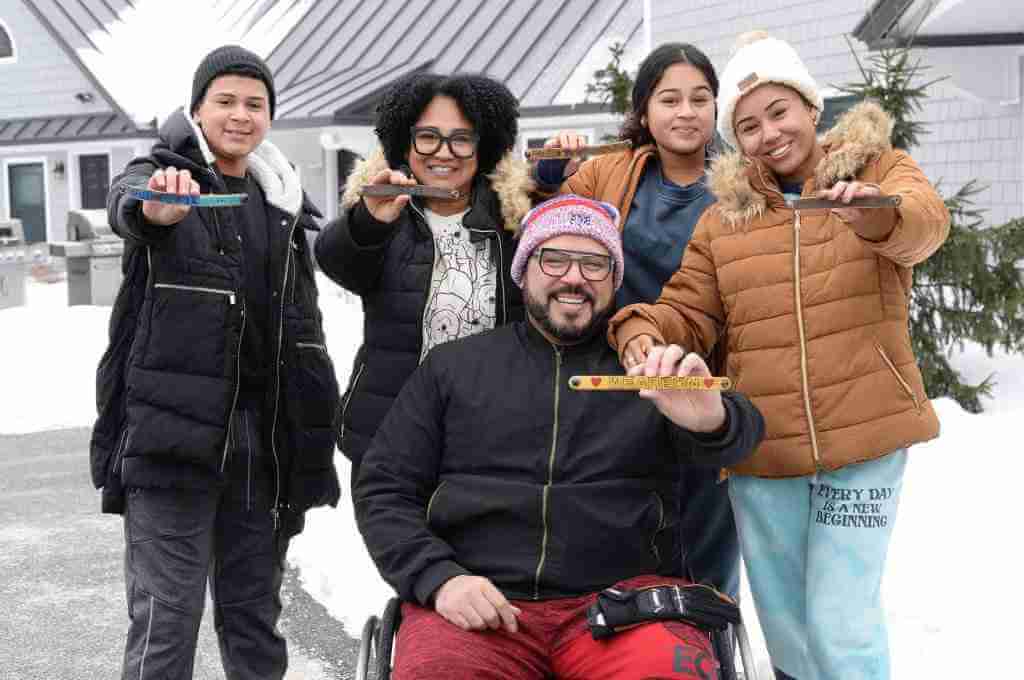 Our family-focused programs are among the most favored at the Travis Mills Foundation. Recalibrated veterans, along with their spouses, children, and close relatives, are encouraged to take part in activities aimed at promoting healing, connection, and enjoyment. Whether you are in New Hampshire or anywhere else in the U.S., we’ll ensure your stay includes experiences such as kayaking, wheelchair basketball, archery, dog sledding, ice fishing, and more. Participation in each activity is optional; however, we organize a schedule that allows families to unwind and appreciate the tranquil ambiance of the Belgrade Lakes region.