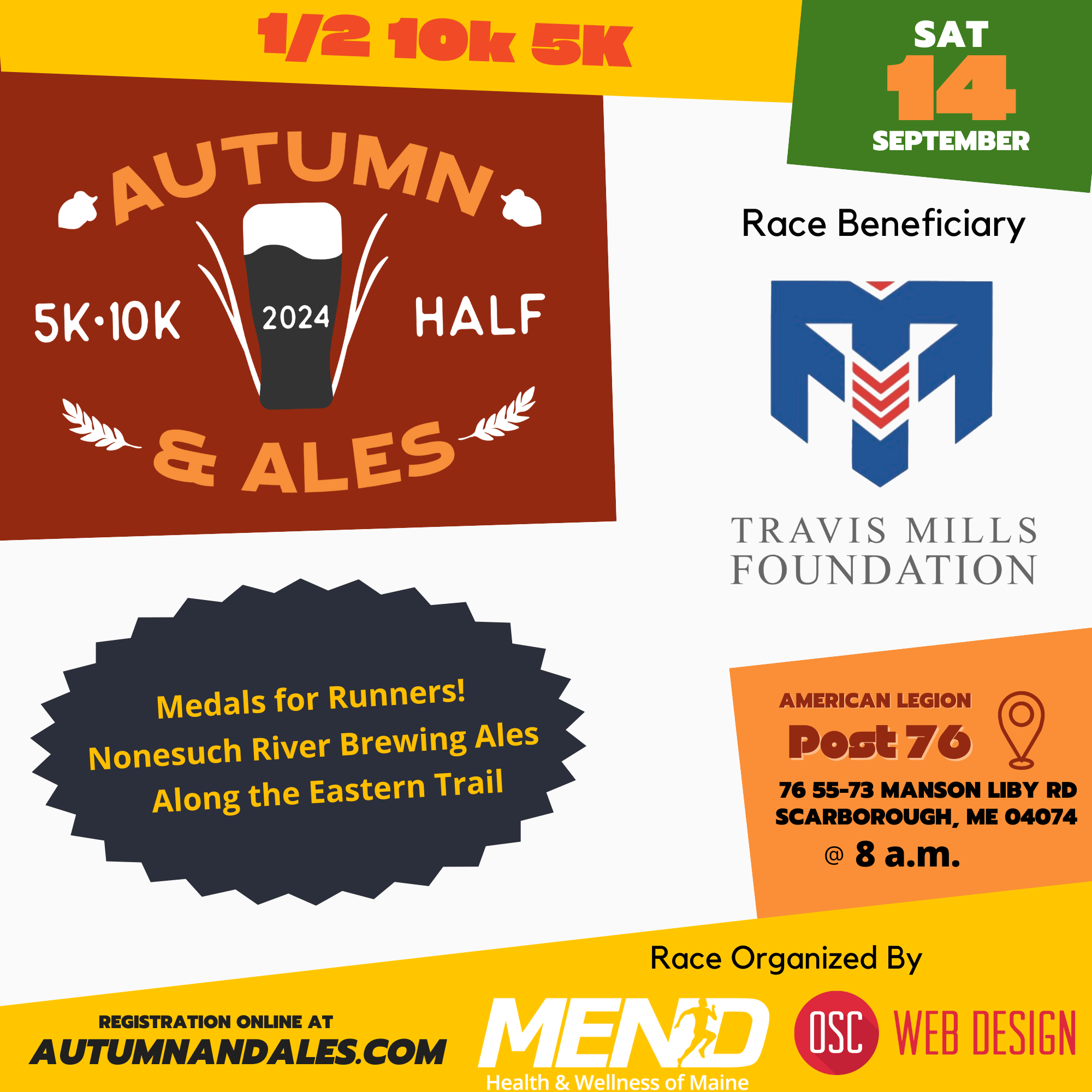 What: 1/2 Marathon, 10K & 5K When: September 14th, 2024 Where: American Legion Post 76 55-73 Manson Libby Road Scarborough, Maine Why: Post 76 has been the headquarters for the Autumn & Ales […]