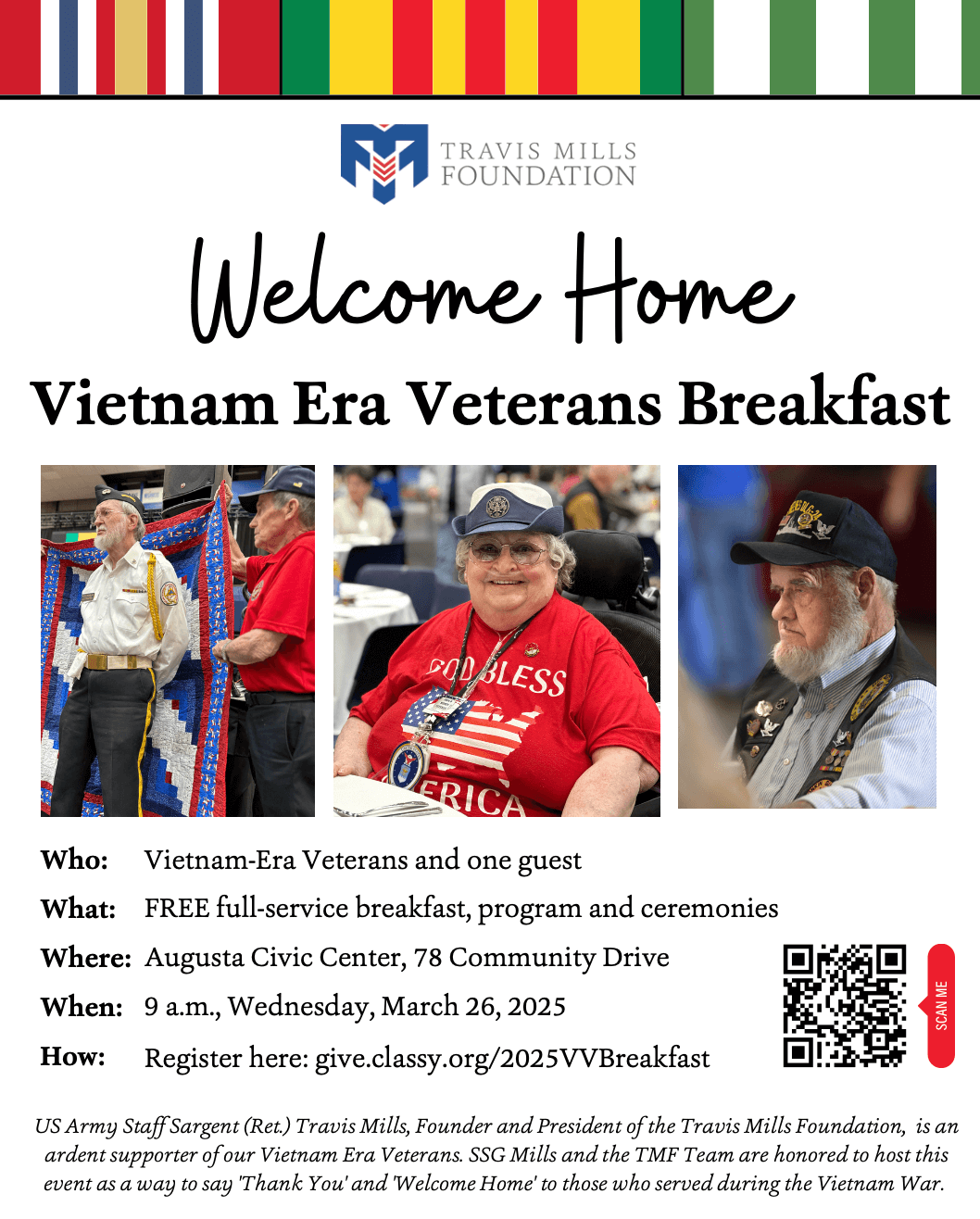 Who: Vietnam-Era Veterans and one guest What: Full-service breakfast and ceremony hosted by Travis Mills Foundation When: 9 a.m., Wednesday, March 26th 2025 Where: Augusta Civic Center Why: To thank […]