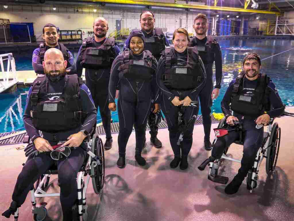 The weightlessness that water offers is a relief for many of our recalibrated veteran participants, especially amputees. The veteran’s family also gets to tour the aquarium and watch on in excitement as their loved one takes part in this opportunity.